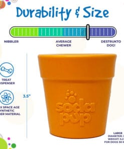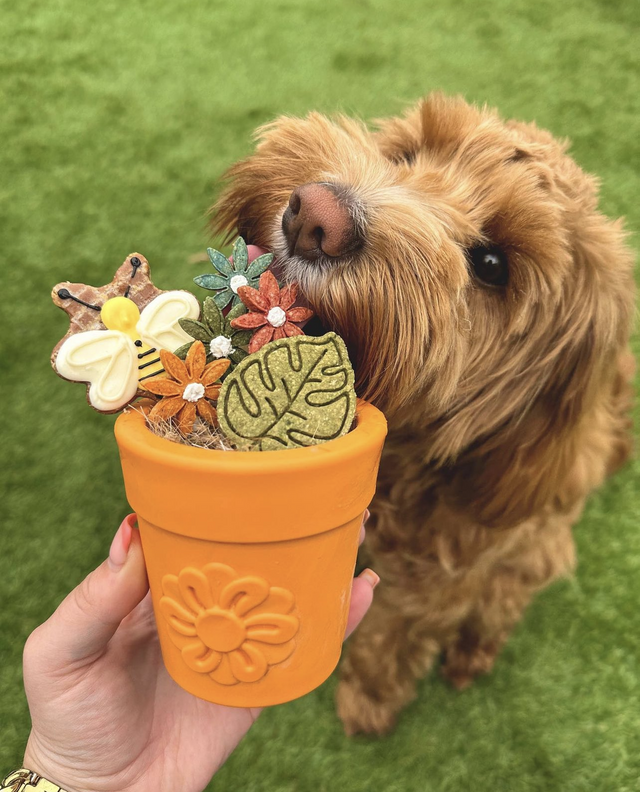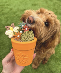 Les pots de fleurs sont la promesse de tant de belles choses : géraniums, pétunias, hortensias, un jardin d’herbes aromatiques peut-être ? Notre nouveau distributeur de friandises Flower Pot est lui aussi plein de promesses – pour toutes vos belles créations d’enrichissement pour votre chien. Nous sommes impatients de voir ce que vous ferez avec ce nouveau produit amusant fabriqué à partir de notre caoutchouc synthétique PUP-X de l’ère spatiale. Remplissez ce nouveau distributeur de friandises amusant avec toutes sortes d’aliments.